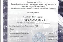 26 января в г. Альметьевск прошел Республиканский конкурс юных музыкантов им. Ф. З. Яруллина в номинации "Оркестровые духовые и ударные инструменты", где Зитханова Алия (флейта) - кл. преп. Ахметзянова Р. Ш, заняла III место. Ахметзянов Р. Ш. награжден Грамотами за педагогическое и концертмейстерское мастерство. Поздравляем!!!
