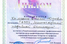 Подведены итоги Республиканской олимпиады по иностранным языкам среди студентов неязыковых специальностей средних профессиональных образовательных учреждений. Олимпиада проходила на базе ФГБОУ ВПО «Набережночелнинский институт социально-педагогических технологий и ресурсов. 106 участников из 39 учебных заведений боролись за победу. ГАПОУ «Лениногорский нефтяной техникум» представляли студенты 3 курса- Стратилатов Роман и Латыфуллин Ринат. И заслуженная победа! Стратилатов Роман занял почётное 2 место, набрав 70.5 баллов.