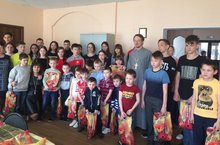 Прихожане храма Святой Троицы поздравили ребят с Пасхой и подарили подарки. Самой главное в этой встрече - теплое дружеское участие прихожан, поделившихся с детьми пасхальной радостью. Наши дети тоже приготовили подарок - с болагодарственными словами вручили гостям пасхальную корзинку.