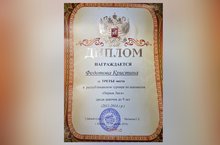 Поздравляем Федотову Кристину, обучающуюся объединения "Юный шахматист", занявшую 3 место в Республиканском турнире по классическим шахматам среди мальчиков и девочек до 9 лет. Турнир проходил в Республиканской спортивной школе им. Р. Г. Нежметдинова г.Казани с 11 по 15 марта. В соревновании приняло участие 160 детей 2011 года рождения и моложе.