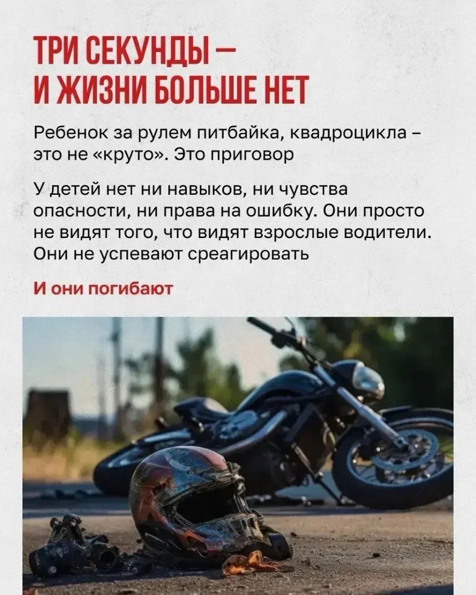 Уважаемые родители! Питбайки - это не игрушка для ваших детей! 16.04.2026