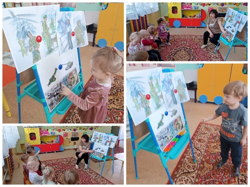 С детками младшей группы во время беседы сформировали первые впечатления о «Папином празднике» - явлении общественной жизни, а также военных мужественных профессиях. Узнали много интересного о празднике День защитника Отечества.