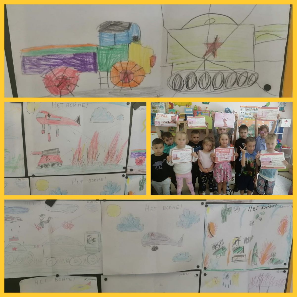 В рамках недели Памяти и Славы в старшей группе прошла беседа. Проведение подобных мероприятий действительно содействует сохранению памяти о событиях Великой Отечественной войны, способствует формированию толерантного сознания и культуры дошкольников, а также воспитанию стремления противостоять насилию и жестокости в современном мире. Память о событиях Великой Отечественной войны – это наша совесть, наша история, наш нравственный долг. Нельзя без боли вспоминать о зверствах фашистов, которые замучили, расстреляли, задушили в газовых камерах миллионы невинных людей, эта память нужна, чтобы мы никогда не были жертвами, палачами или равнодушными наблюдателями. Память о тех, кто ценою своей жизни добыл нам победу, нужна и нынешнему, и будущим поколениям как яркий пример беззаветного служения народа своему Отечеству. Подтверждением этому являются строки из стихотворения Ю. Друниной: «Эта память, верьте, люди, всей Земле нужна. Если мы войну забудем, вновь придет война». После беседы ребята выразили свои эмоции в рисунках, на которых явно было видно, что дети против войны, против жестокости и фашизма.