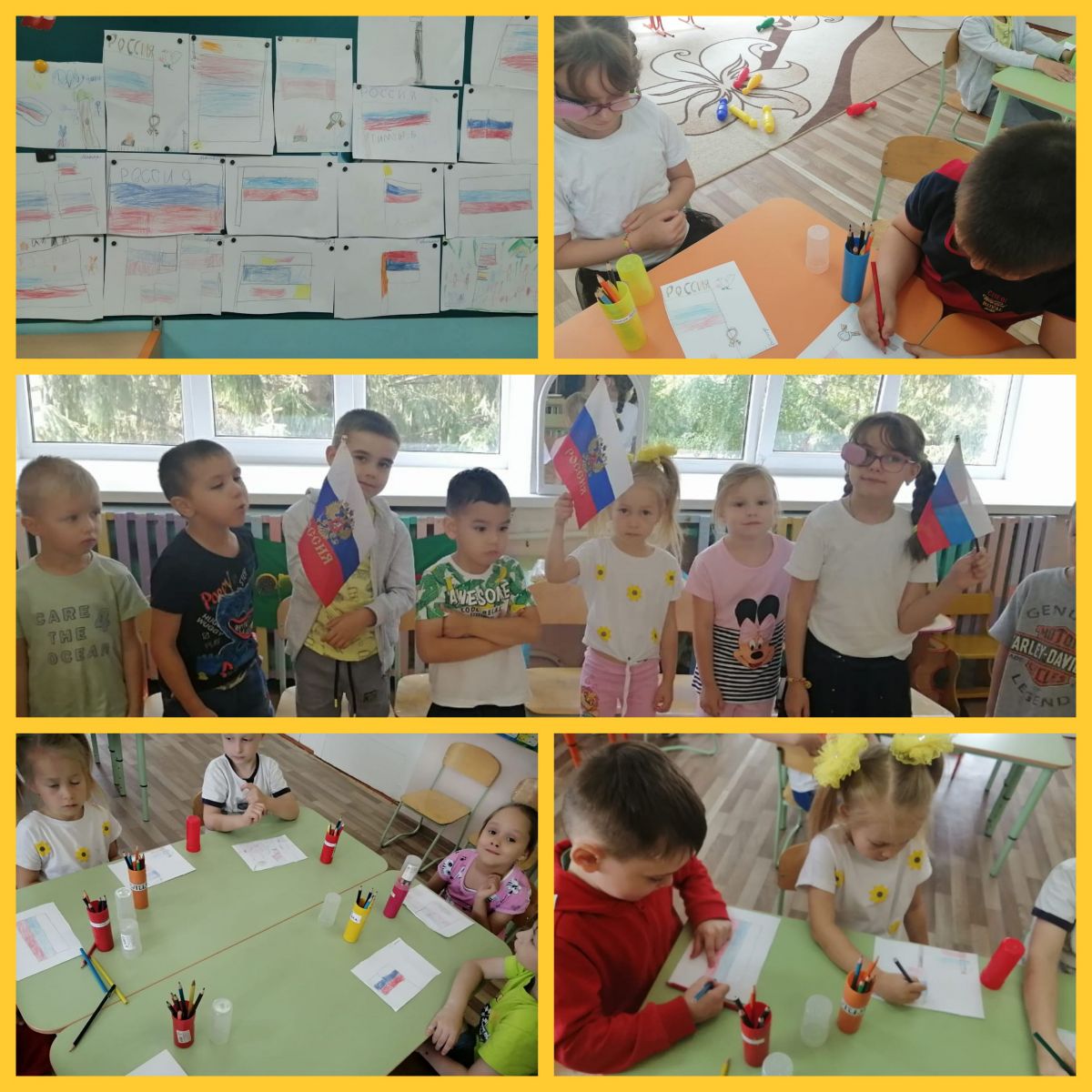 Сегодня воспитанники старшей группы вместе с воспитателем Исаевой Е.Н. просмотрели презентацию на тему «День России», где детям рассказали об истории нашей огромной и самой красивой в мире многонациональной страны, о многообразии народных традиций. Вспомнили с ребятами традиционные и нетрадиционные символы государства. Познакомились с разнообразием природного богатства нашей страны. А для закрепления знаний ребята нарисовали символы нашей страны.