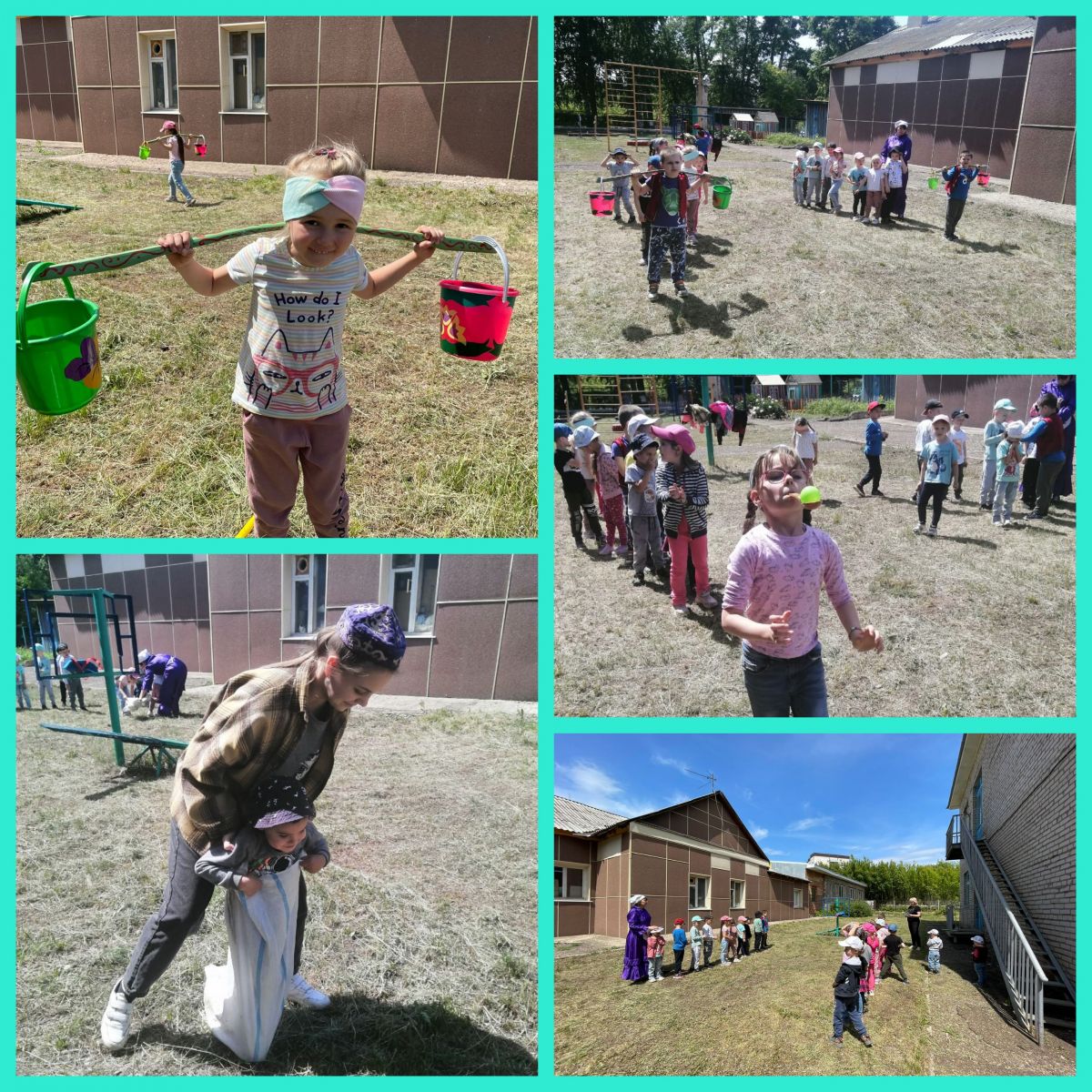 В детском саду прошел традиционный праздник «Сабантуй». Ребята соревновались в силе, ловкости и выносливости, поиграли в игры соревновательного характера: «Бой мешками», «Конные скачки», «Бег в мешках», «Кто быстрей донесёт яйцо в ложке», «Перетяни канат». Особенно весело прошел бой мешками.Ребята читали стихотворения о родном крае, о празднике, слушали песни на татарском языке, плясали, играли в забавные, весёлые игры.