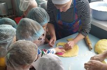Ребята с интересом рассмотрели картину «Повар», провели игровую ситуацию «Обед для друзей», встретились с поварами и сами попробовали приготовить пирожки.