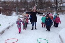 Сегодня к ребятам подготовительной группы пришел в гости Акбай, герой цикла занятий по татарскому языку, и организовал Зимнюю Спартакиаду. Ребята соревновались в силе и выносливости во время катания на санках, в ловкости и скорости во время ходьбы на лыжах, ведении шайбы, в меткости при метании снежка в цель. Кроме того, дошкольниками был закреплен словарный запас в названии слов-действий на татарском языке.