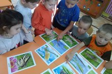 Нина Викторовна Болтачева провела с малышами вводную беседу, на которой они в игровой форме вспомнили названия основных цветов, рассказали, каким предметам и объектам природы свойственны эти цвета. Воспитатель при этом делала акцент на объекты природы: цветы, насекомых деревья. В процесс беседы воспитатель напомнила детям о том, что нужно ко всем этим объектам природы относиться бережно.