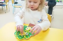Каждый предмет вокруг воспитатели предлагают исследовать по цвету, форме, величине, пополнить чувственный опыт ребенка через слух, зрение, обоняние, осязание, пробудить в нем интерес к познанию, стремлению самостоятельно «изучать» мир. И в этом им помогают игровые пособия - шнуровки, замочки, пуговки, кнопочки, липучки…