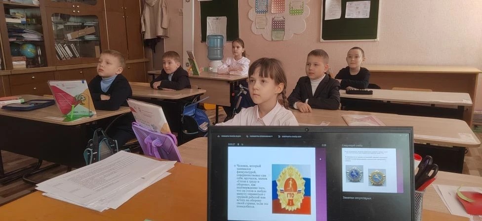 Классный час «ГТО – традиции и современность» 18 марта в 1 классе классах прошёл тематический классный час, посвящённый истории и современному развитию комплекса ГТО. Дети узнали о первой ступени ГТО для 6–8 лет, посмотрели презентацию с изображениями значков разных лет и выполнили небольшие практические задания на ловкость и координацию. В конце занятия каждый ученик получил памятку с нормативами для самостоятельной подготовки. Выставка рисунков «Мама, папа, я – спортивная семья» С 16 по 20 марта среди учащихся начальной школы была организована выставка рисунков первоклассников на тему «Мама, папа, я – спортивная семья». Ребята изобразили, как они вместе с родителями занимаются спортом и готовятся к сдаче норм ГТО.