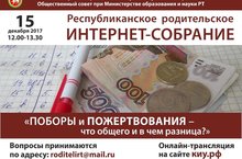 Тема заседания – «Поборы и пожертвования – что общего и в чем разница?». Вести заседание будетзаместитель министра образования и науки Республики Татарстан – руководитель Департамента надзора и контроля в сфере образования Гульнара Габдрахманова.