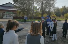 Отряд ЮИД и учащиеся начальных классов с начальником отделения профилактики ГБУ «БДД» в Лениногорском районе Кирдяновой Э.С. Она провела беседу и практическое занятие с учащимися по безопасному переходу через дорогу.