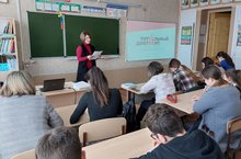 Учитель истории провела урок «Моя страна». Школьники 7-9 классов узнали предысторию сегодняшних событий: о том, какую опасность представляет НАТО для нашей страны, почему Россия встала на защиту мирного населения Донецкой и Луганской народных республик и почему освободительная миссия на Украине – это необходимость.