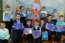 Наша школа не осталась в стороне от чествования космонавтов в этот день. Школьники активно участвовали в в выставке рисунков, посвященных космосу.