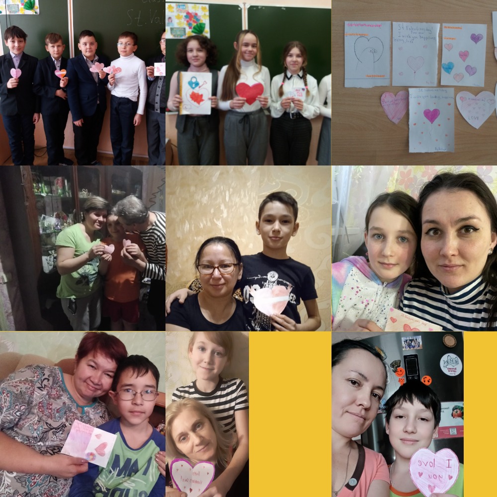 Учащиеся 6-9 классов издали газеты на тему «Это интересно», с 2 по 7 классы создали поздравительные Валентинки в честь праздника и подарили их своим близким. Учитель русского языка и литературы Гайфуллина Н.И. проводила КВН и внеклассное мероприятие. Учитель английского языка Шириева Г.И. провела игру и викторину.