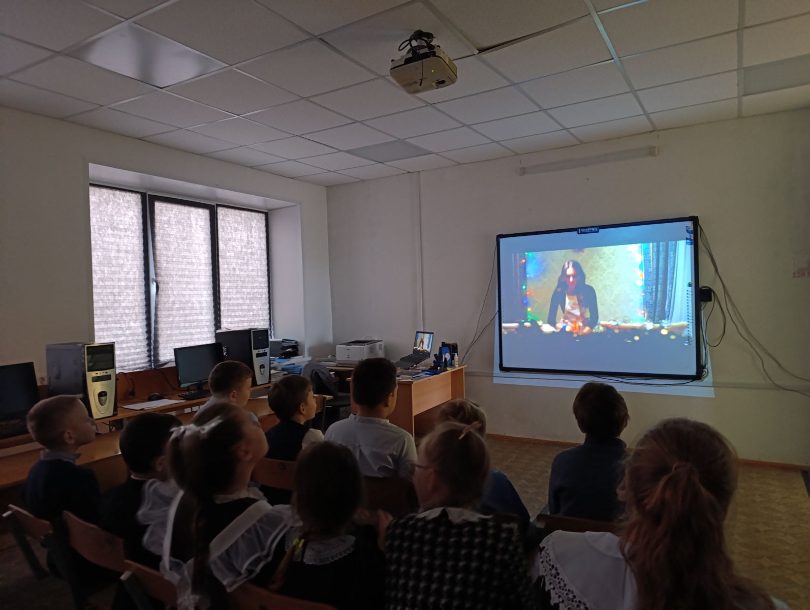 Ученики 1 класса посмотрели душевный фильм «С Новым годом, Раиса Родионовна!». История рассказала о пожилой учительнице английского, которую на Новый год не смог навестить занятой сын. Однако один из её учеников устроил настоящий праздник: собрал выпускников разных лет, и они всем классом приехали поздравить любимую учительницу в новогоднюю ночь. Эта трогательная встреча завершилась неожиданным и радостным появлением сына, что сделало чудо полным. После фильма ребята делились впечатлениями о том, как важно помнить и ценить своих учителей.