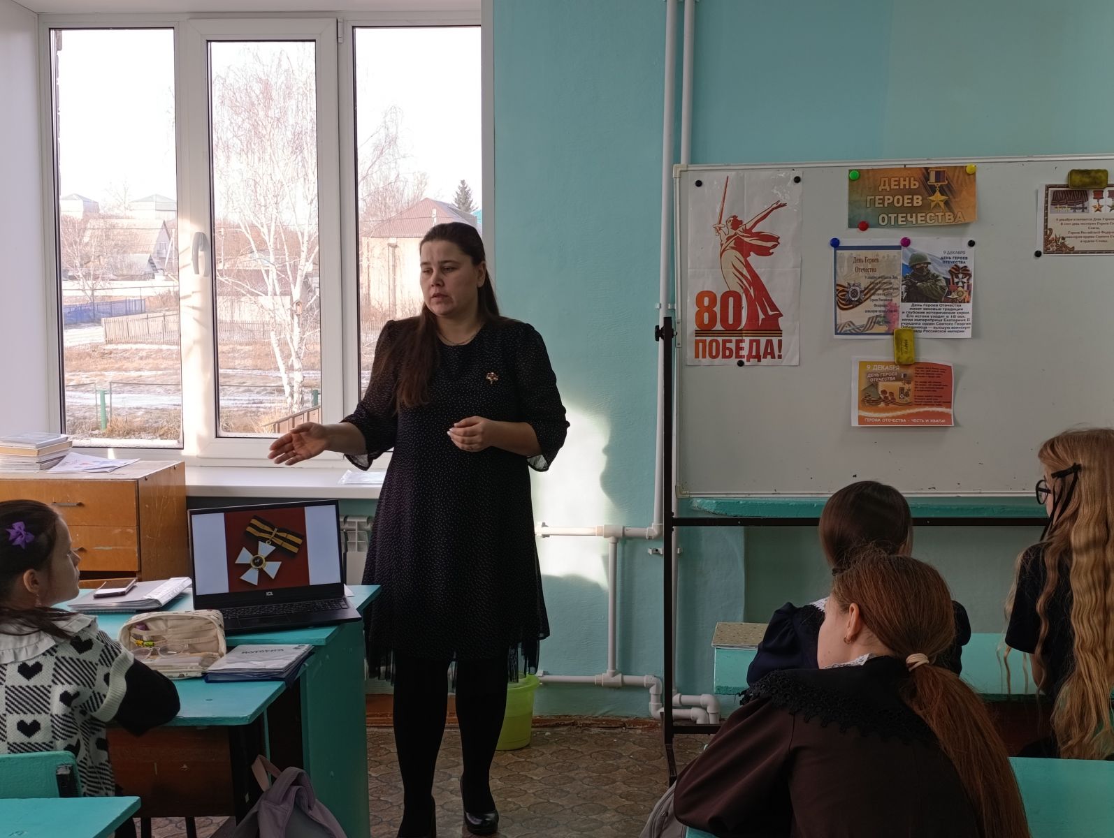 Учитель истории Бобкова Евгения Юрьевна провела урок мужества «День Героя Отечества». Напомнив ученикам о значимых событиях, связанных с защитой Родины, и о героях, чьи подвиги навсегда остались в памяти народа.