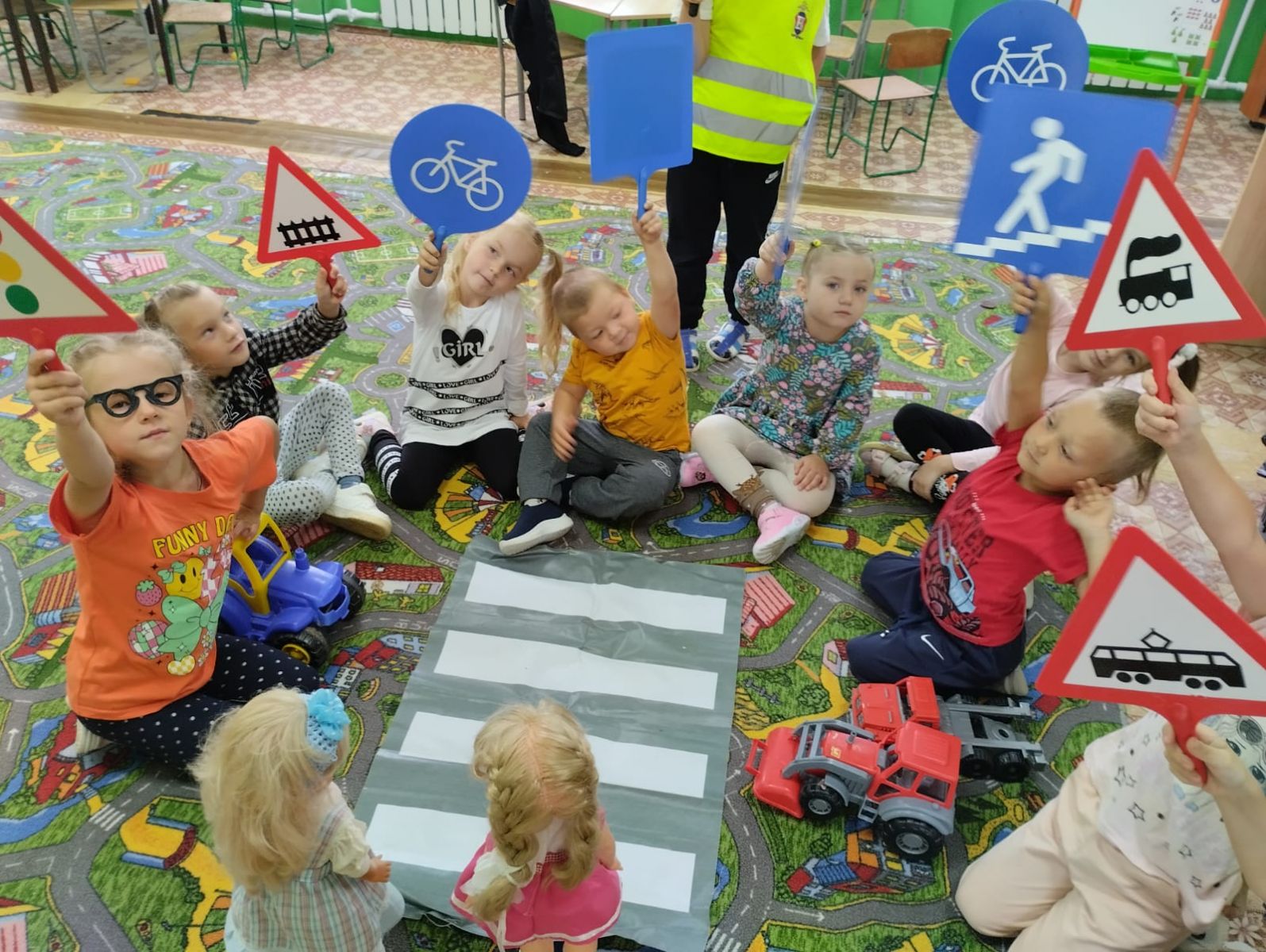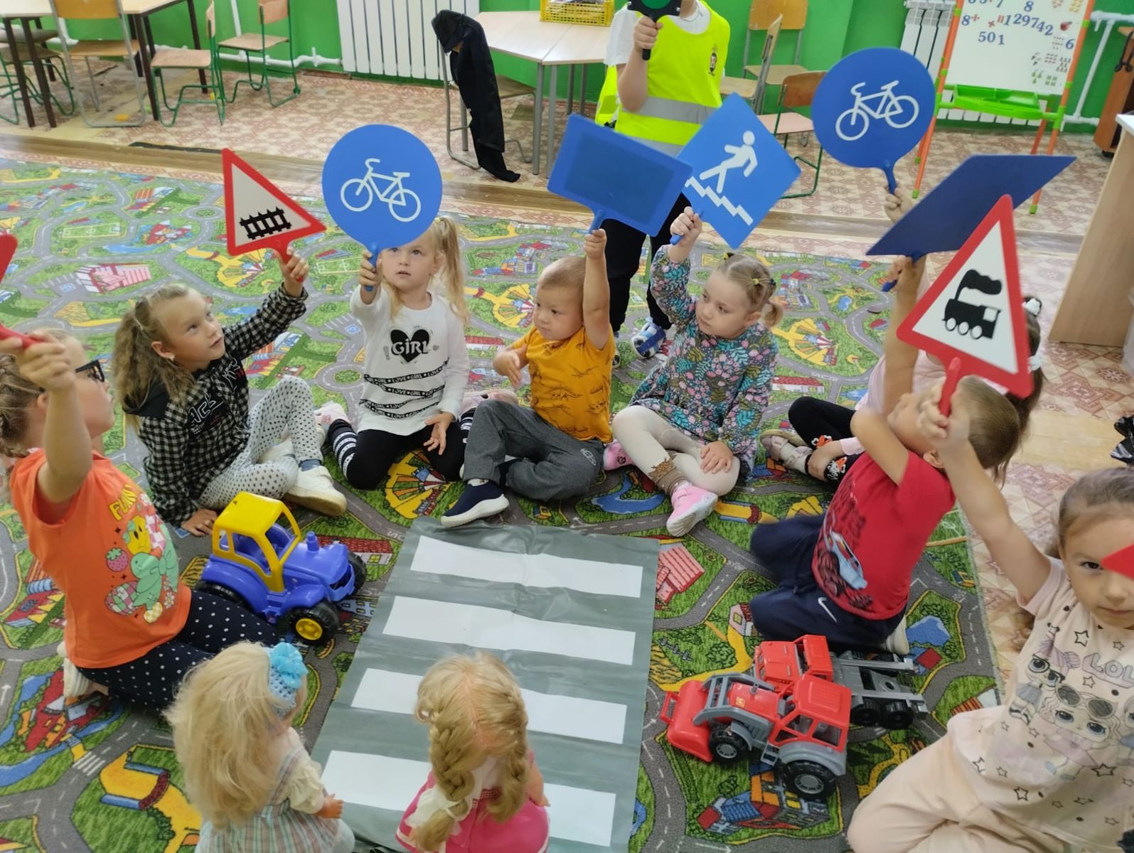 «Перейдем дорогу правильно!\верно! по правилам!» под таким названием 2.09.2925 г. в нашем саду для разновозрастной группы прошла познавательно-игровая викторина для детей по правилам дорожного движения. Обучение детей правилам безопасного дорожного движения, по–прежнему, остается одной из основных задач. Поэтому, необходима повседневная работа с детьми о важности соблюдения правил дорожного движения.На протяжении всего мероприятия в зале царила атмосфера веселья и радости. Кроме знаний о сигналах светофора и правилах дорожного движения, дети получили эмоциональный заряд и хорошее настроение.