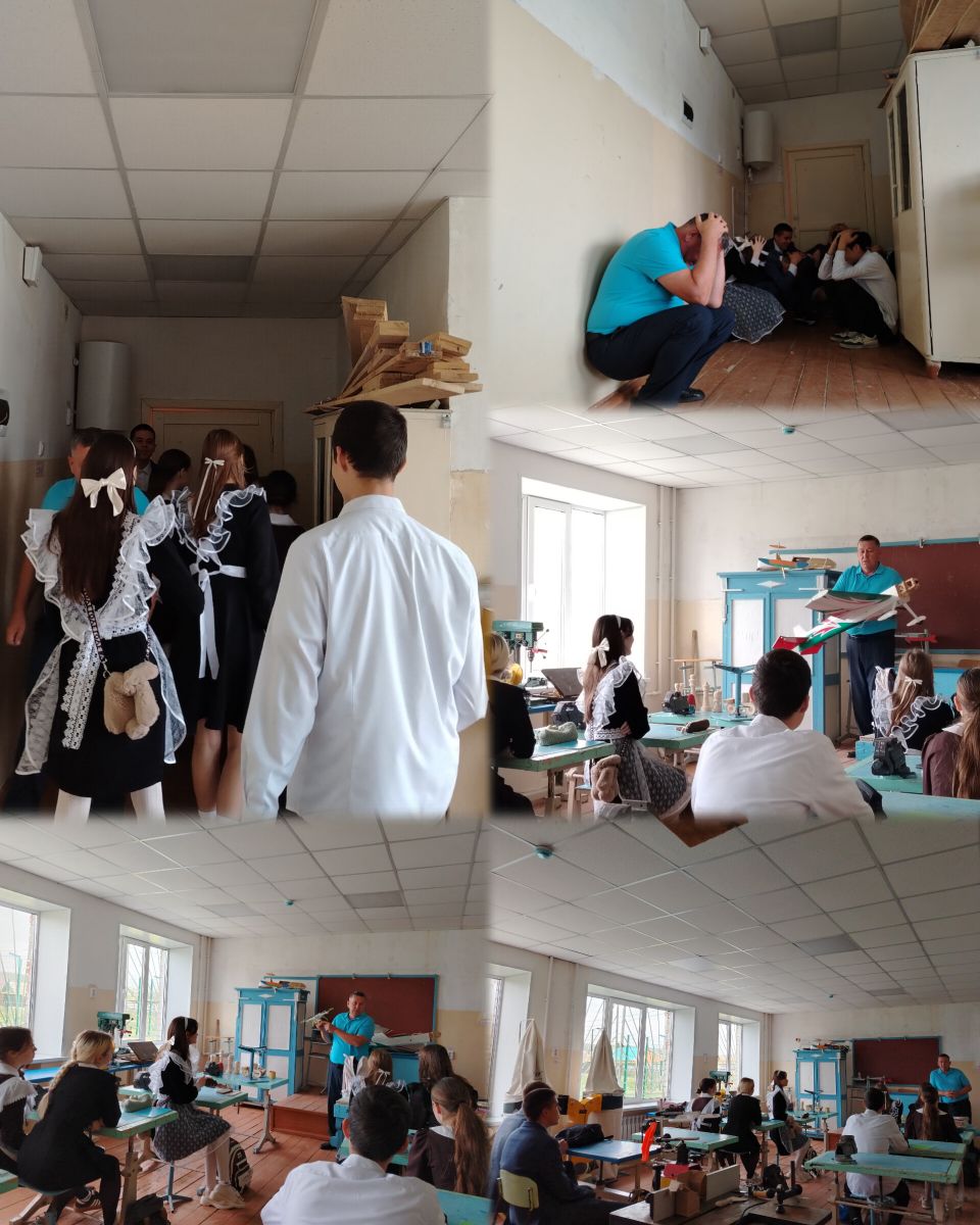 Главная задача тренировки заключалась в отработке алгоритма действий сотрудников и обучающихся при атаке БПЛА. Педагоги и обучающиеся быстро и без паники эвакуировались в помещение без окон.