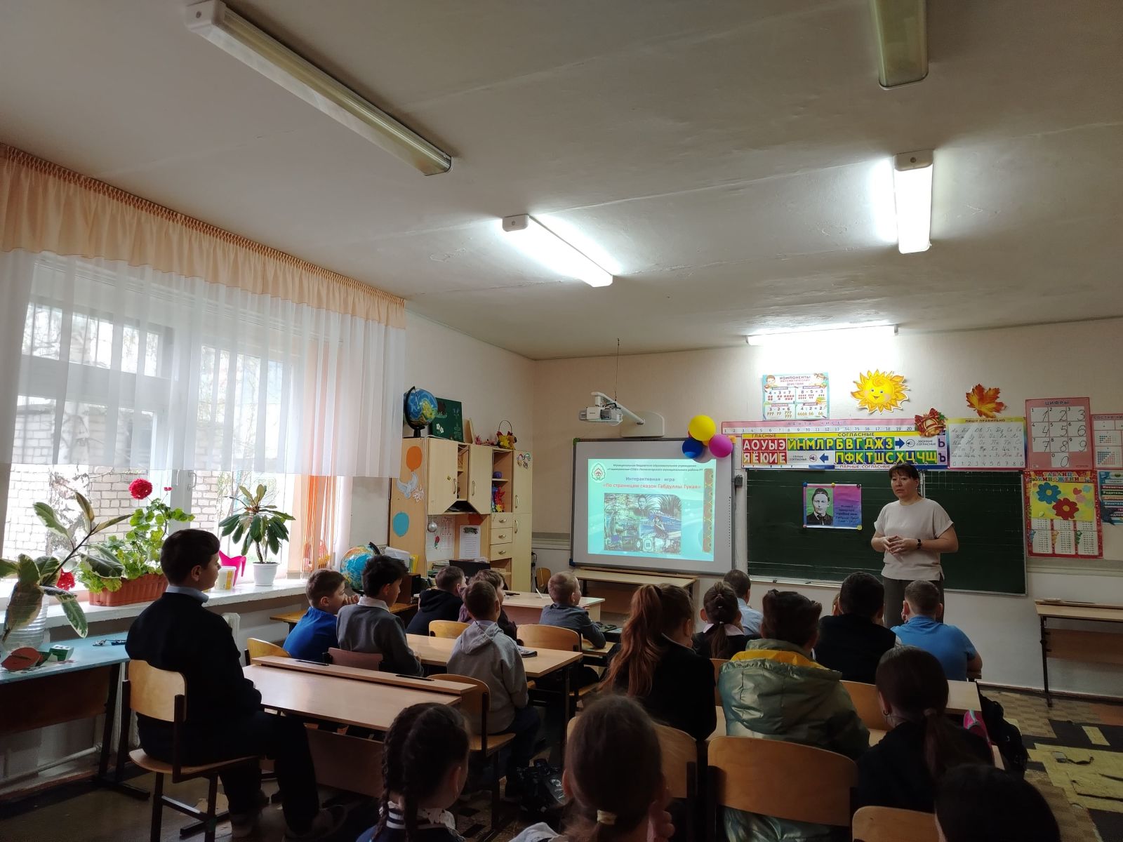 «По страницам сказок Габдуллы Тукая». Ребята вспомнили известного татарского поэта, автора детских сказок и стихов, отвечали на вопросы.- Чтение стихов Г. Тукая на родном языке. Ученица 7 класса Жанна В. прочитала стихотворение «Туган авыл», ученик 6 класса Максим В. прочел стихотворение «Родной язык».