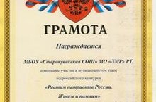 17 ноября на совещении заместителей директоров по воспитательной работе МБОУ "Старокувакская СОШ" была вручена грамота об участиии в муниципальном этапе всероссийского конкурса "Растим патриотов России. Живем и помним".Школа вышла на республиканский этап конкурса.