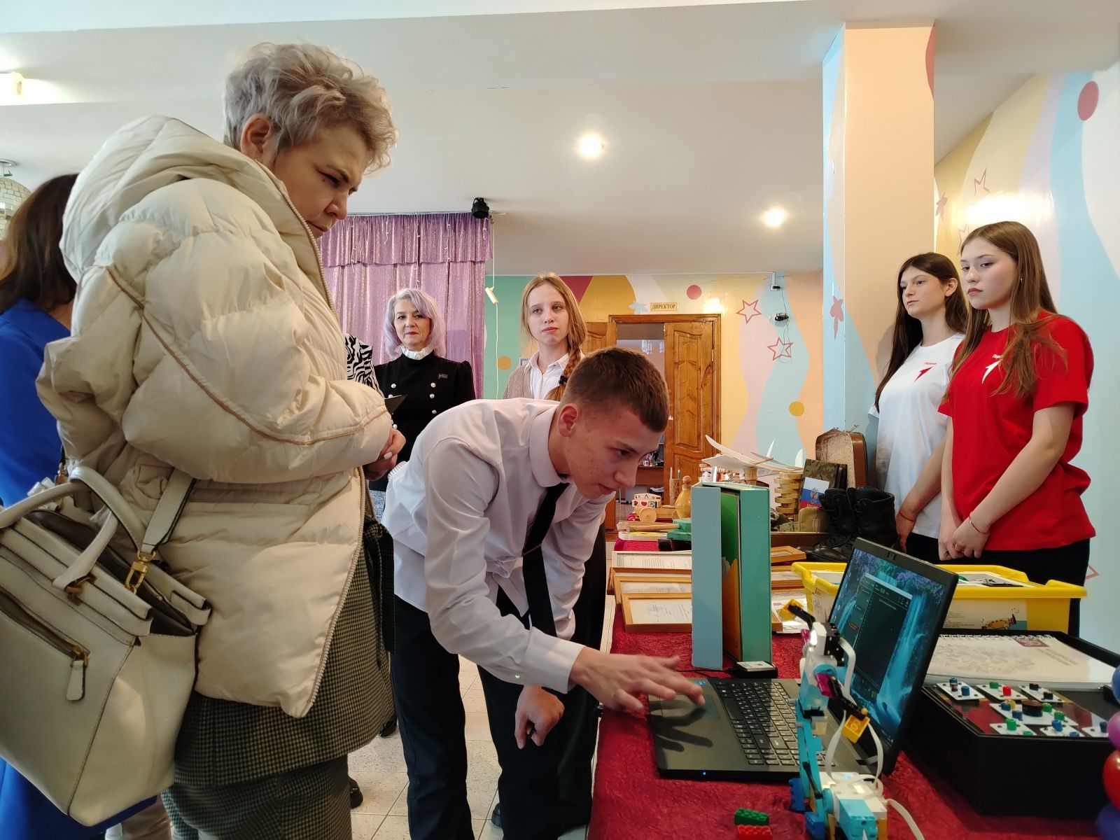 Так в 2021 году в рамках Федерального проекта «Современная школа» был открыт центр образования «Точка Роста» естественно-научного направления. Были оснащены 3 кабинета – химия, физика, биология. И более подробно об это рассказал ученик 10 класса Исламов Данил. Он показал эксперимент по измерению относительной влажности воздуха в помещении при помощи цифровой лаборатории «Releon lite», также он продемонстрировал работу запрограммированного танцующего робота из лего-конструктора.