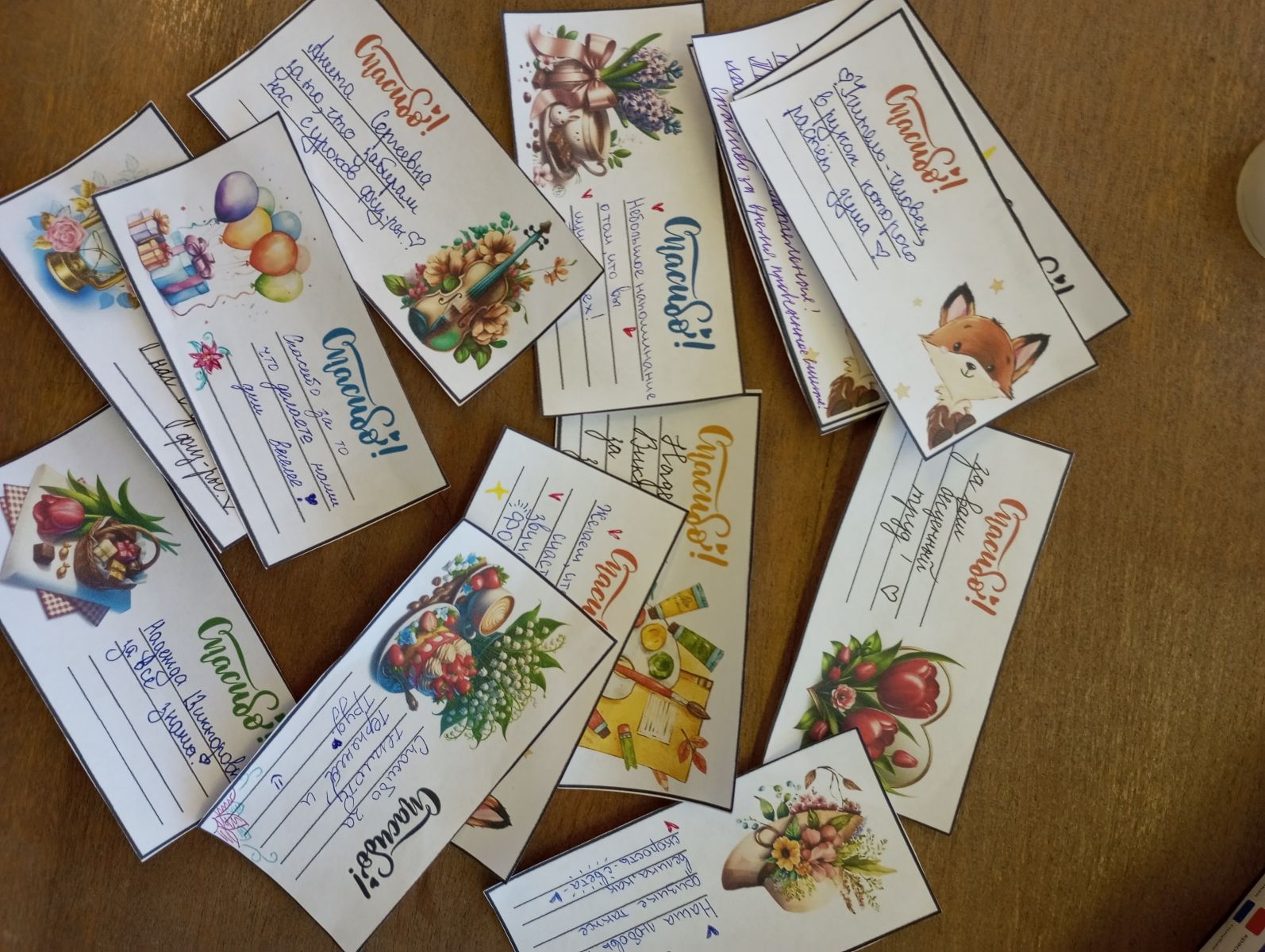 Отличный способ завершить учебный год – это написать открыточки тем людям, благодаря которым, этот год стал особенным! Акция прошла успешно, весь день ребята писали слова благодарности за что-то важное для каждого. Ребята раздавали «Спасибо» своим учителям, друзьям, поварам и все тем, кому хотели сказать спасибо за учебный год.