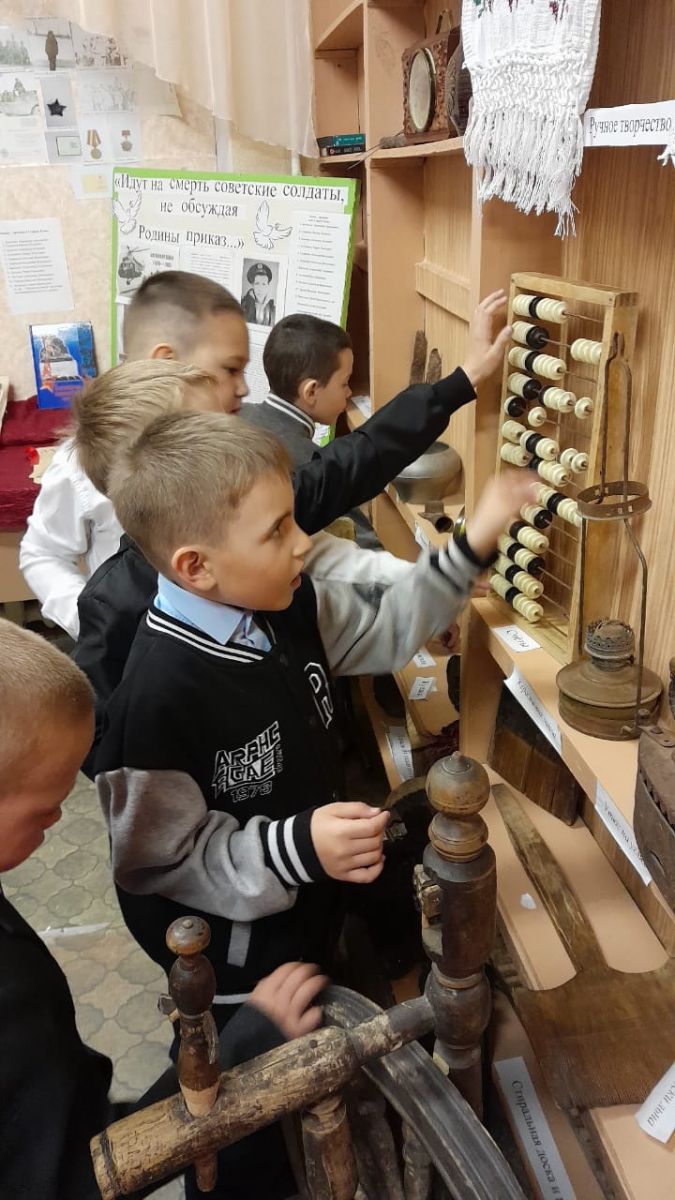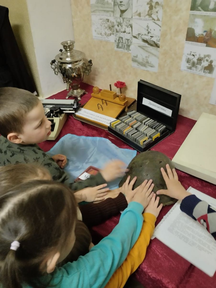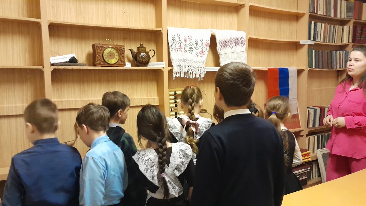 В преддверии этого события учитель истории Бобкова Евгения Юрьевна провела для учащихся школы и для воспитанников детского сада экскурсию в школьный музей. Ребята совершили удивительное путешествия сквозь время и узнали много нового и интересного.