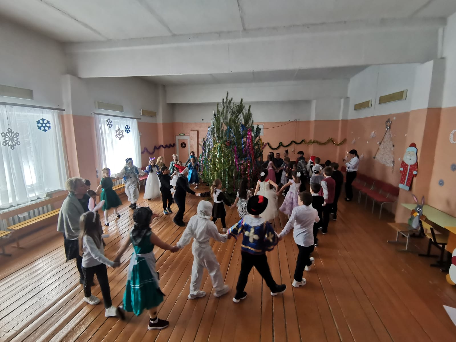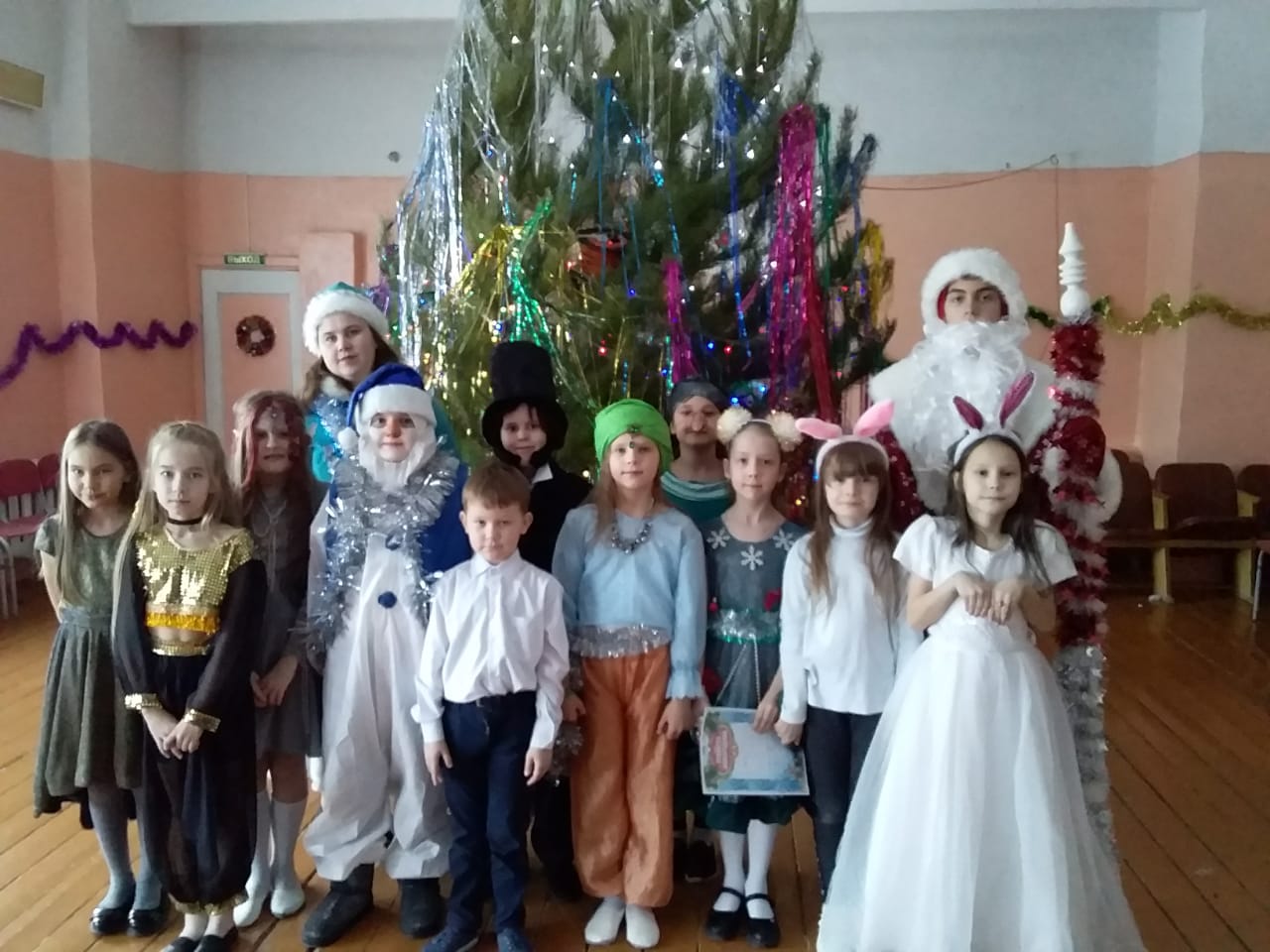 Самый любимый праздник, как взрослых, так и детей, конечно же, Новый год. Подготовка началась задолго до наступления праздников. Педагоги с детьми разучивали стихотворения, проводили беседы на тему Нового года, новогодних традиций, разучивали с учащимися песни и пляски. Дети в ожидании чудесного новогоднего праздника старались и ждали подарков. Огромную работу провели по оформлению зала, за это можем сказать СПАСИБО. В центре зала — украшенная ёлка. На мероприятия дети пришли нарядные, весёлые в предвкушении праздника. Учащиеся, участвовавшие в новогоднем представлении, проявили себя хорошими артистами, показав всё своё творческое мастерство, артистизм и организаторские способности. Им пришлось перевоплотиться в разных героев: Кикимору, Бабу Ягу, Снегурочку, Деда Мороза. С самого начала представления сказочные герои увлекли детей в волшебный мир сказки. Дети смогли окунуться в праздничную атмосферу приключений, поучаствовать в интересных конкурсах. С появлением Деда Мороза начался настоящий праздник с песнями и танцами. После представления дети читали стихи Деду Морозу и Снегурочке, фотографировались с персонажами, получали новогодние подарки.
