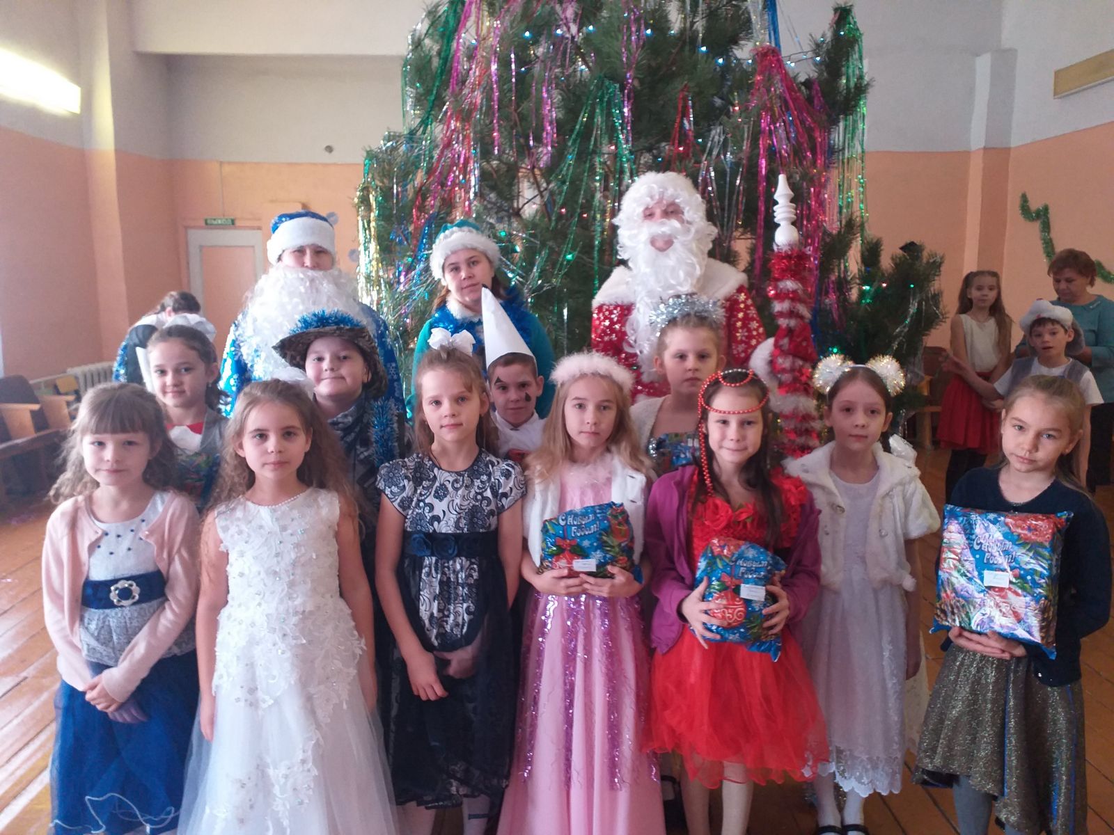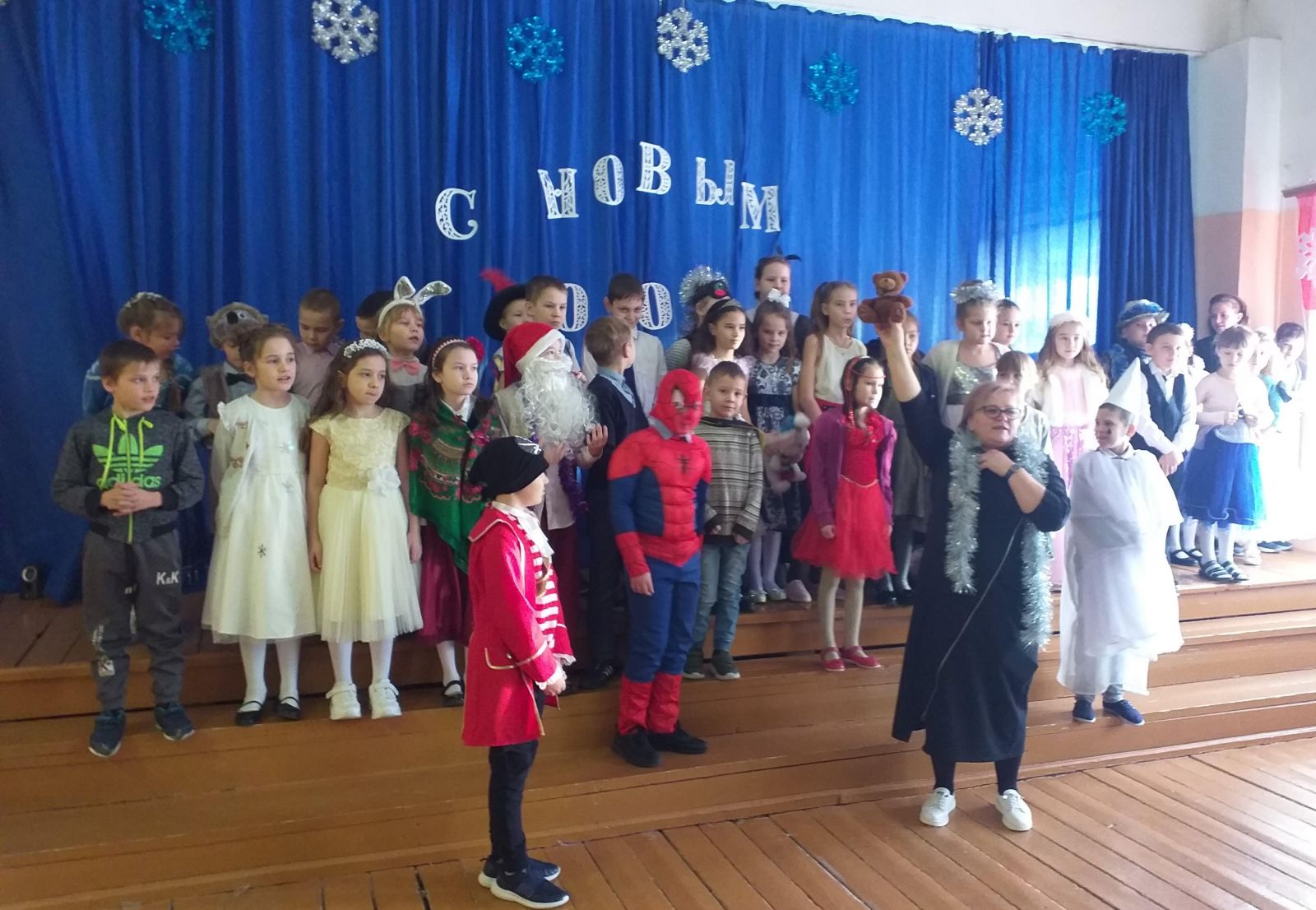 28 декабря в нашей школе были проведены новогодние елки для 1-4 классов, 5-7 классов и 9-11 классов. Дети пришли на представление нарядные, веселые в предвкушении праздника. И их надежды оправдались. Педагоги, родители, учащиеся, участвовавшие в новогоднем представлении, проявили себя хорошими артистами, показав все свое творческое мастерство, артистизм, задор и организаторские способности. Им пришлось перевоплотиться в Бабу Ягу, Снегурочку, Деда Мороза и другие сказочные персонажи. С самого начала представления сказочные герои увлекли детей в волшебный мир сказки. Дети смогли окунуться в праздничную атмосферу приключений, поучаствовать в интересных конкурсах. С появлением Деда Мороза начался настоящий праздник с песнями и танцами, хороводами вокруг ёлки. После представления дети читали стихи Деду Морозу и Снегурочке, фотографировались с персонажами, получали новогодние подарки. Очень интересным был конкурс «Защита новогоднего костюма». Самым лучшим Дед Мороз и Снегурочка вручили призы. Утренники прошли весело и интересно. От лица администрации школы мы благодарим всех родителей, педагогов, учщихся за помощь и активное участие в проведении Новогодних праздников.