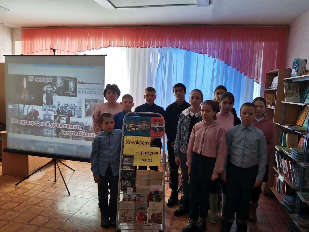 В рамках Недели Памяти жертв Холокоста, в Старокувакской сельской библиотеке сельским библиотекарем Хавратовой Н.В. было проведено внеклассное мероприятие «Холокост: память без срока давности» для учащихся 7,8 классов. На мероприятии, для ребят рассказали о страшных событиях Холокоста, одной из самых известных трагедий ХХ века. О попытке фашистов полного истребления целых наций, приведшей к уничтожению более 11 миллионов человек. В библиотеке была организована книжная выставка «Холокост – трагедия мира», на которой бала представлена литература о Великой отечественной войне, о массовых расстрелах невинных мирных людей, о детях, которым пришлось пройти ужасы, ад и пекло фашистских лагерей смерти. -