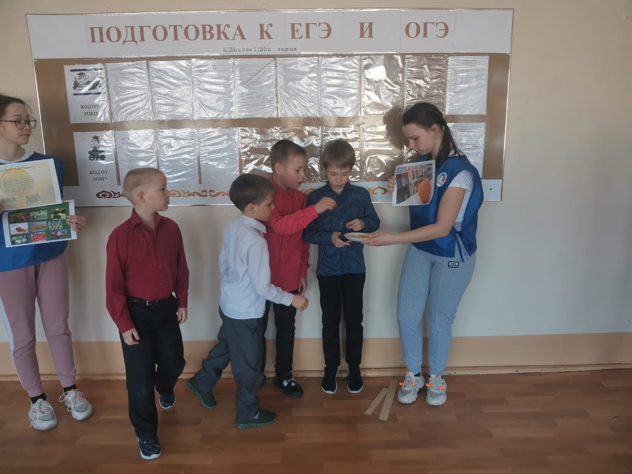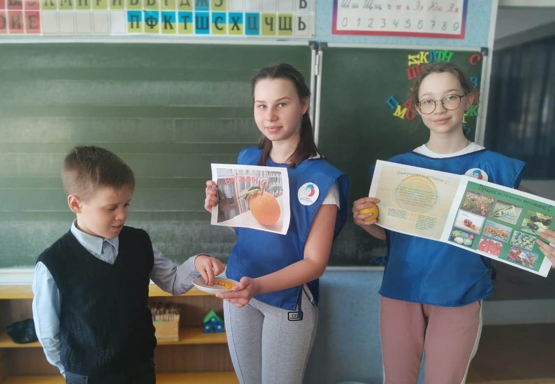 4 апреля учащимися школьного движения РДШ была проведена Акция «Подружись с витамином С». Ребята рассказали учащимся о пользе витамина С, о истории открытия этого витамина а так же раздавали учащимся аскорбиновая кислоту и дольки лимона и апельсина, содержащие витамин С. -