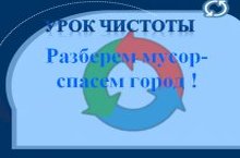 В начальном звене нашей школы прошёл Урок чистоты по теме «Разберём мусор – спасём город». На этом уроке обсуждались вопросы, от которых зависит качество нашей жизни. Беседовали о том, как быстро загрязняется наша планета, что можем сделать мы, чтобы предотвратить это загрязнение.