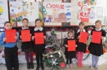 Поздравляем победителей конкурса рисунков «Новогодняя сказка» среди ребят начальных классов Сабитова Яна (2кл), Скутырлов Артем (4кл), Сорокина Лиза (4кл), Сивачева Юля (4кл), Бердникова Даша (3кл), Полумордвинцева Маша (4кл).