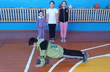 В спортзале учитель физкультуры Сушков Д.С. проводиль с учащимися Комплекса ГТО за июнь месяц