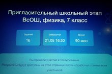 Ученик 7 класса Валиев Марсель принял участие в пригласительном школьном этапе всероссийской олимпиады школьников «Сириус» по физике. Он дал онлайн-ответы на вопросы олимпиады. Результаты будут известны после окончания олимпиады.
