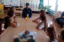 В пришкольном лагере состоялась встреча с сотрудником противопожарной службы. В ходе беседы повторили правила безопасности при пожаре. Потом состоялась викторина "Огонь- друг или враг?"