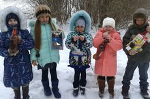 1-2 класс укучылары, “Кошларга ярдәм” акциясендә катнашып, җимлекләр ясап килделәр. Аларны агачларга элделәр һәм җим салып кошларны сыйладылар. Бу эш көн дә дәвам итәчәк.