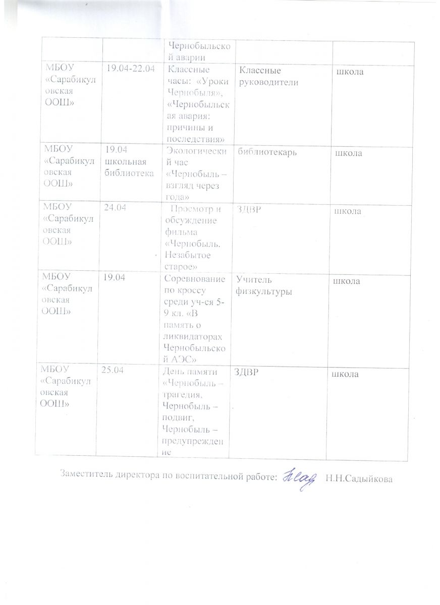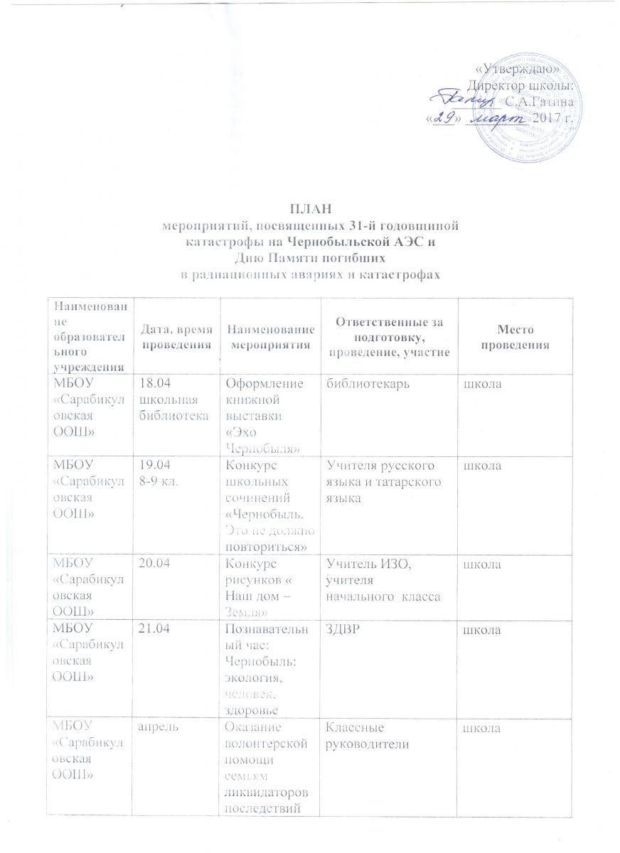 - ПЛАН мероприятий, посвященных 31-й годовщиной катастрофы на Чернобыльской АЭС и Дню Памяти погибших в радиационных авариях и катастрофах 03.04.2017