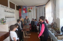 Укучылар музей җитәкчесе белән берлектә музейга экскурсия ясадылар. -