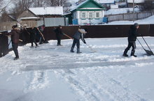 1 - 4 класс укучылары кортны кардан чистартырга чыкты. Алар бик тырышып эшләделәр. Корт бит барлык укучылар өчен дә кирәк. Бозда шуу үзе бер рәхәт бит!