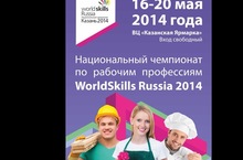 Национальный Чемпионат WorldSkills Russia 2014 приглашает всех с 16 по 20 мая на Казанскую Ярмарку. Со всей России ребята приедут в Казань, чтобы представить свою профессию и побороться за звание лучшего по специальности, за шанс получить путевку на международный чемпионат и достойно представить Россию! Добро пожаловать! Вход свободный!».