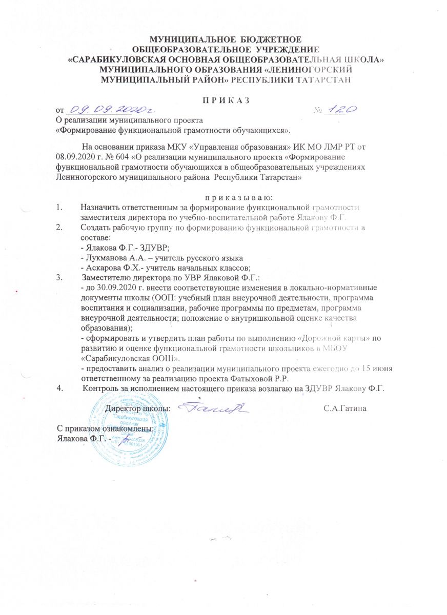 Приказ школы о реализации муниципального проекта Фин.грамотности