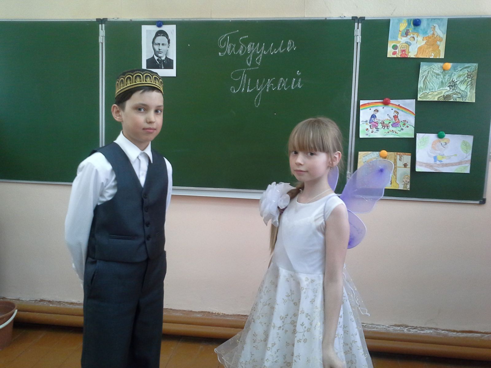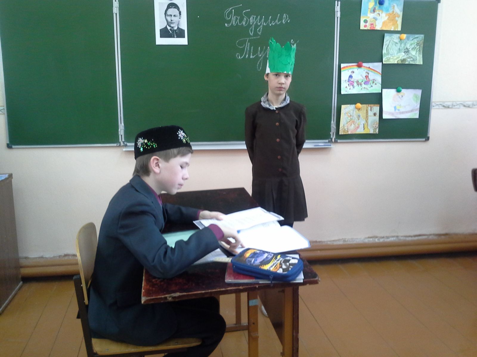 18.04.2017 г. было проведено внеклассное мероприятие, посвященное творчеству Габдуллы Тукая. В данном мероприятии принимали участие учащиеся 4,6 классов (учитель Яманаева Г.Ш.). Учащиеся 4 класса рассказывали стихи, инсценировали произведения великого поэта Г.Тукая – «Бала белән күбәләк”, “Эш беткәч уйнарга ярый”. Учащиеся 6 класса выступили с презентацией о жизненном и творческом пути поэта.