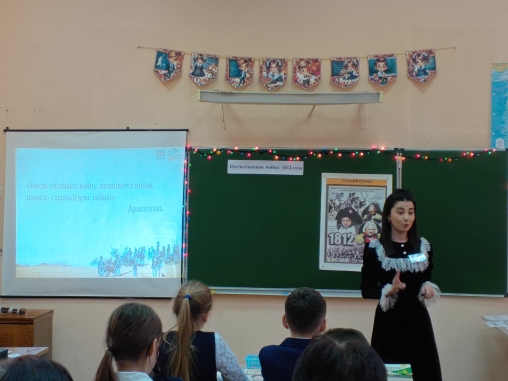 Внеурочное занятие по окружающему миру «Отечественная война 1812 года» (4 класс), Магомедова К.Б., учитель начальных классов 1 кв. категории МБОУ «ООШ №1», победитель регионального этапа Всероссийского конкурса «Учитель года Республики Татарстан - 2022», номинация «Педагогический дебют»;