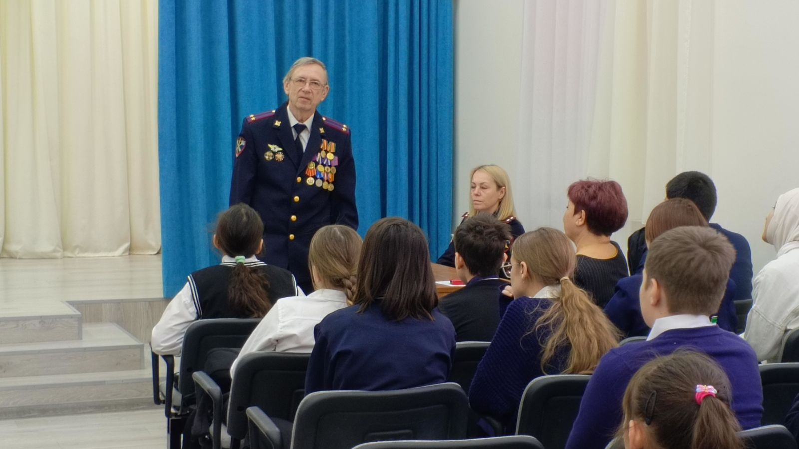 Начальник ОРЛС Шукова Е.С. познакомила учащихся с правилами поступления в Елабужское суворовское военное училище МВД России, куда можно поступить после 8 класса, и о Казанском юридическом институте МВД России.