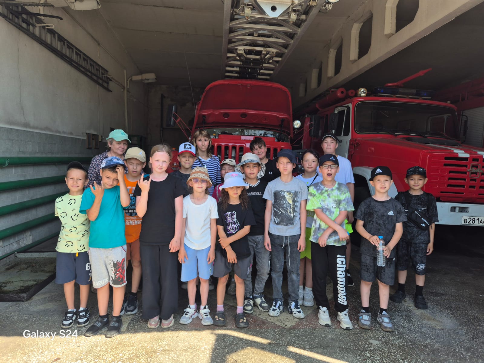 После утренних мероприятий отряды отправились в поход: на экскурсию в ПЧ-66 и отрабатывали навыки по пожарной безопасности. Воспитанники прослушали беседу о комплектации пожарной машины, одевали каски, противогазы. Поближе познакомились с работой пожарных. Все очень понравилось, ребята были в восторге. Многие из них захотели в будущем свою жизнь связать с работой пожарного.