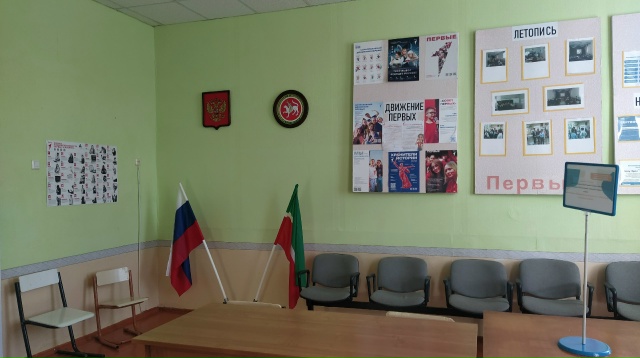 Здесь же представлены миссия, ценности, направления движения, размещены флаги и гербы РФ и РТ. За удобным столом проводятся собрания Совета Первых, а в свободное от учебы время ребята могут поиграть в настольные игры или обсудить планы. Все пространство располагает к тому, чтобы ребятам было комфортно и познавательно.