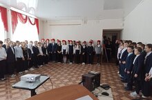 На линейке присутствовали учащиеся 5-ых классов, а также члены отрядов "Факел" и "Юнармия" (руководитель Димиева Э. А). -