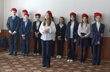На линейке присутствовали члены отрядов" Факел" и "Юнармия" (руководитель Димиева Э.А.) и учащиеся 3а и 3б классов